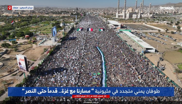 تصوير جوي | الملايين تلبي دعوة الله و الأقصى و القدس والقائد… مليونية “مسارنا مع غزة.. قدماً حتى النصر” في ميدان السبعين بالعاصمة صنعاء 13-08-1445 | 23-02-2024م