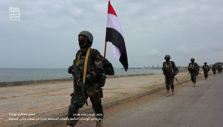 مسير عسكري لوحدة رمزية من القوات الخاصة في القوات المسلحة اليمنية قطع حوالي 200 كيلو متر ابتداء من العاصمة صنعاء مرورا بمحافظة المحويت وصولا إلى ساحل البحر الأحمر في مدينة الحديدة في إطار رفع الجاهزية القتالية وتضامنا مع الشعب الفلسطيني