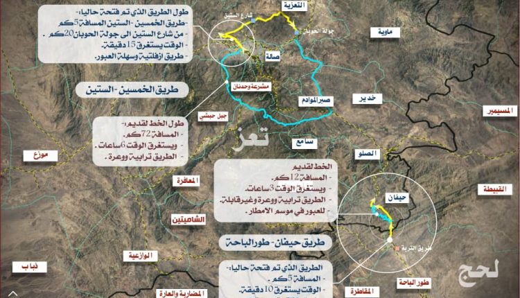 شاهد.. خريطة توضيحية بالتفاصيل لمبادرة صنعاء لإعادة فتح الطرق في تعز (صورة)