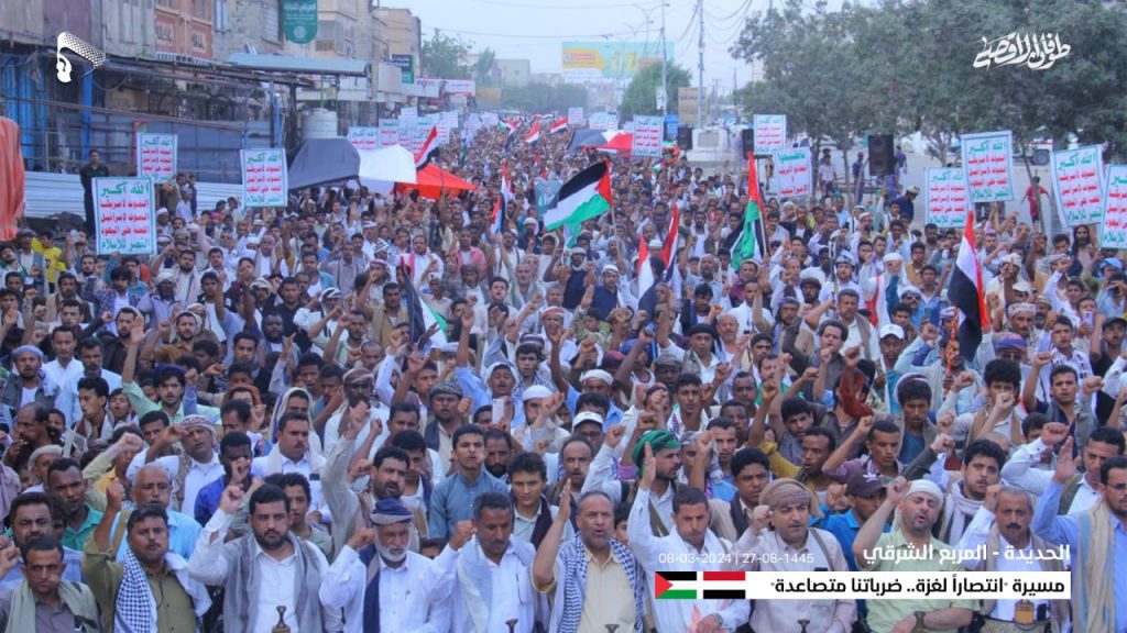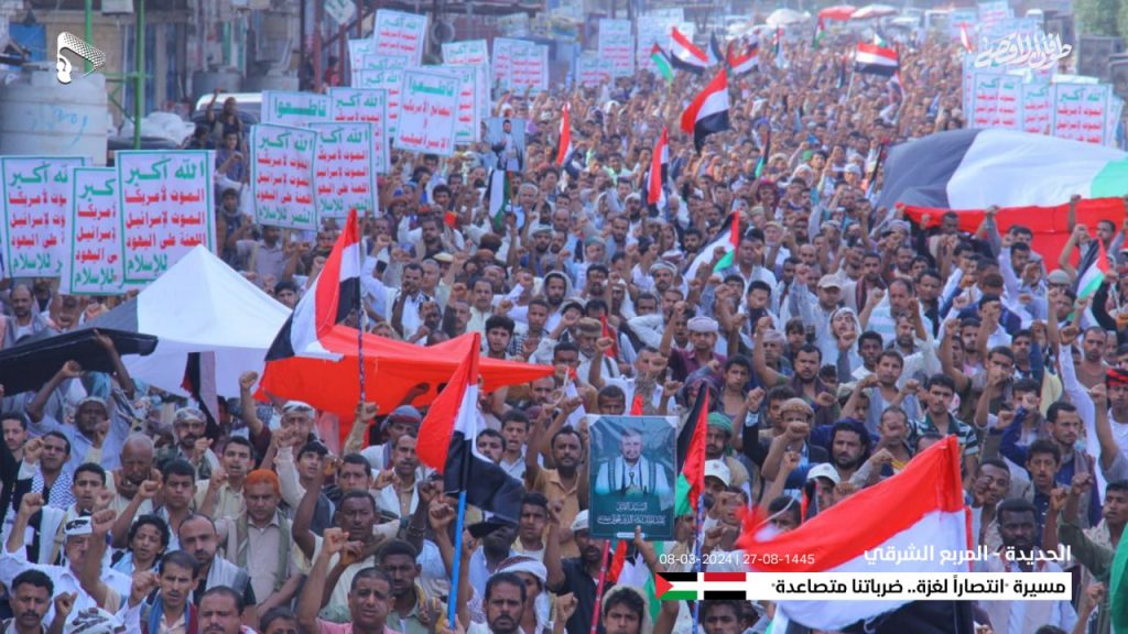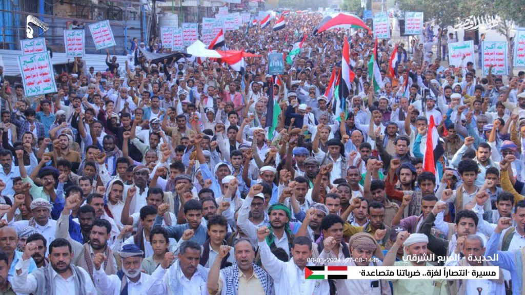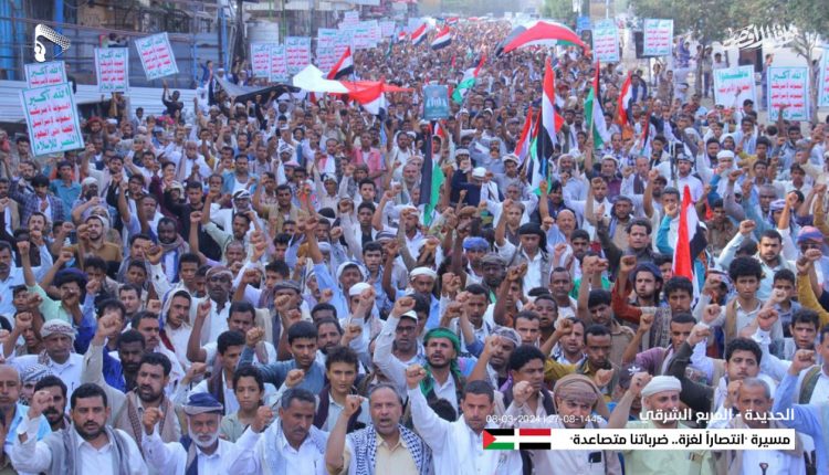 مسيرات جماهيرية كبرى في الحديدة تحت شعار “انتصارا لغزة ضرباتنا متصاعدة”