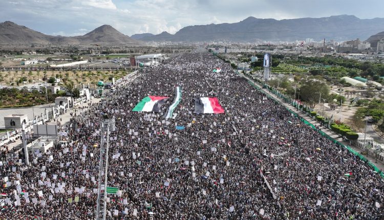 شهدت العاصمة صنعاء اليوم، طوفانا بشريا في مسيرة “انتصارا لغزة.. ضرباتنا متصاعدة” تضامنا مع الشعب الفلسطيني وتنديدا باستمرار الكيان الصهيوني في ارتكاب المجازر في غزة.