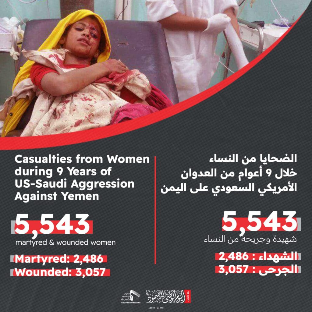 إحصائية جرائم العدوان الأمريكي السعودي بحق نساء اليمن خلال 9 سنوات (صورة) On مارس 26, 2024 الصمود| مشاركة