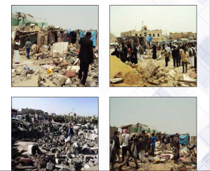 تسبب العدوان الأمريكي السعودي الإماراتي على مدى التسع السنوات الماضية في استهداف الأعيان المدنية، من تدمير منازل المواطنين وإتلاف مزارعهم وممتلكاتهم وتدمير وإتلاف وحرق البنية التحتية والمشاريع الخدمية وقصف الأسواق وإيقاف التعليم ومراكز تقديم الخدمات الصحية ومحطات الكهرباء وشبكات المياه وغيرها من المنشآت الحيوية التي تقدّم خدمات مباشرة للمواطنين.