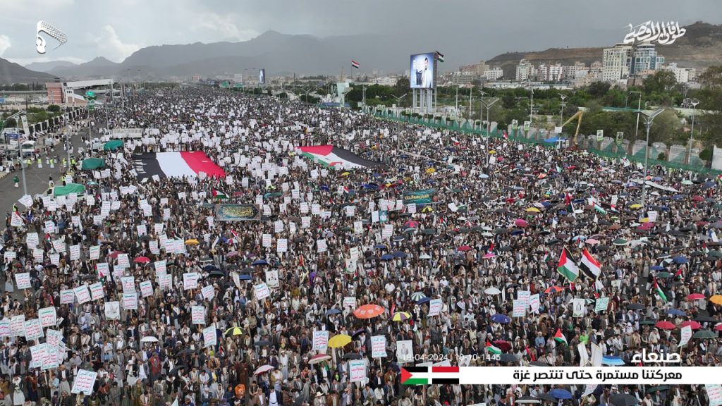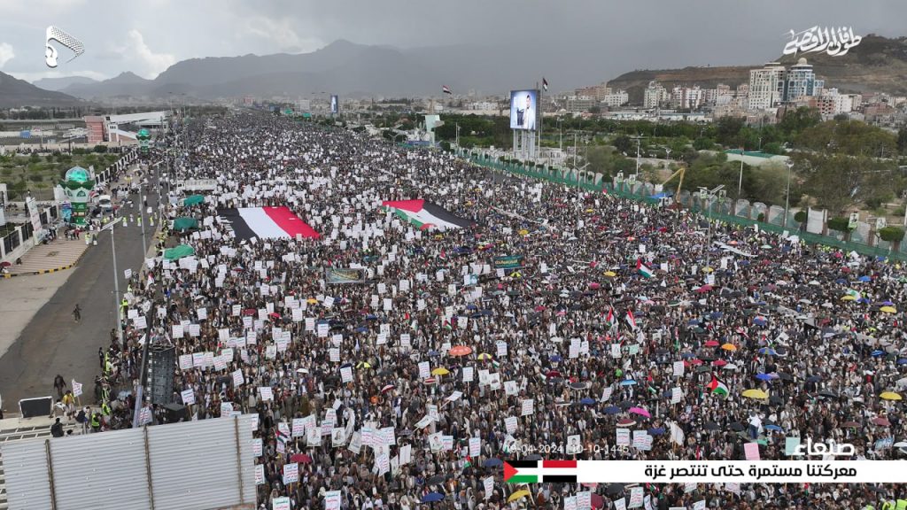 صور جوية| ميدان السبعين بالعاصمة صنعاء يكتظ بالملايين في مسيرة “معركتنا مستمرة حتى تنتصر غزة” On أبريل 19, 2024 الصمود| صور جوية | ميدان السبعين بالعاصمة صنعاء يكتظ بالملايين في مسيرة “معركتنا مستمرة حتى تنتصر غزة ” 10-10-1445 | 19-04-2024 صور جويةميدان السبعين بالعاصمة صنعاء يكتظ بالملايين مشاركة