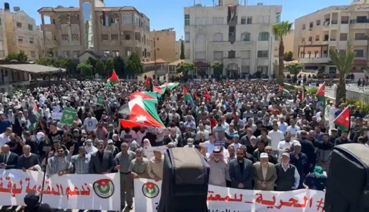 دعماً للمقاومة ورفضاً للتهجير.. مسيرة حاشدة في محيط سفارة الكيان الصهيوني في عمان