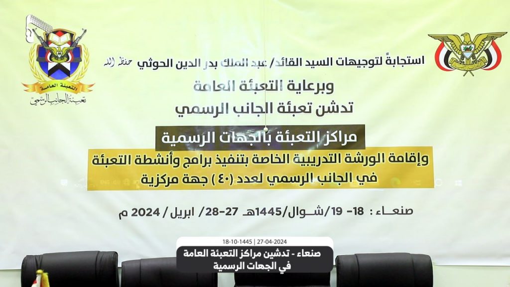 شاهد/ تدشين مراكز التعبئة العامة في الجهات الرسمية (صور) شاهد/ تدشين مراكز التعبئة العامة في الجهات الرسمية (صور) On أبريل 27, 2024 الصمود| صور | تدشين مراكز التعبئة العامة في الجهات الرسمية لعدد 40 جهة مركزية – صنعاء 18-10-1445 | 27-04-2024 مشاركة