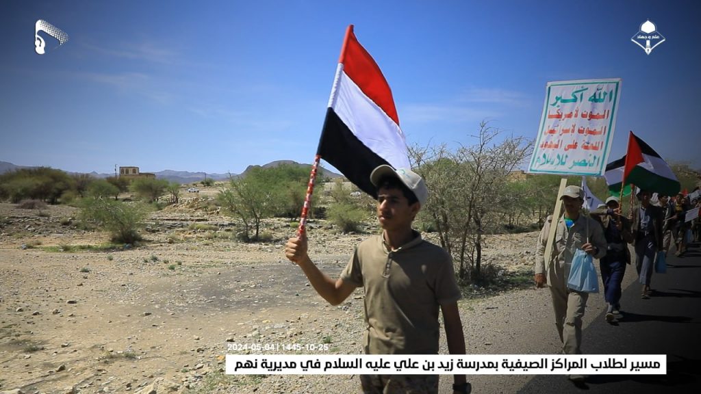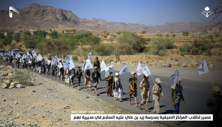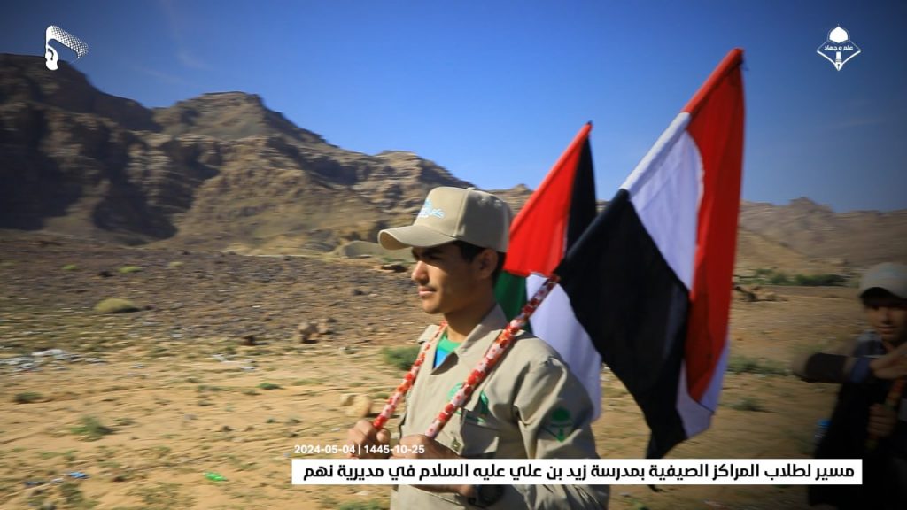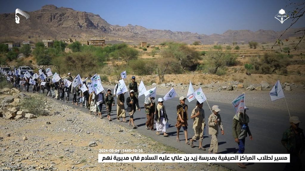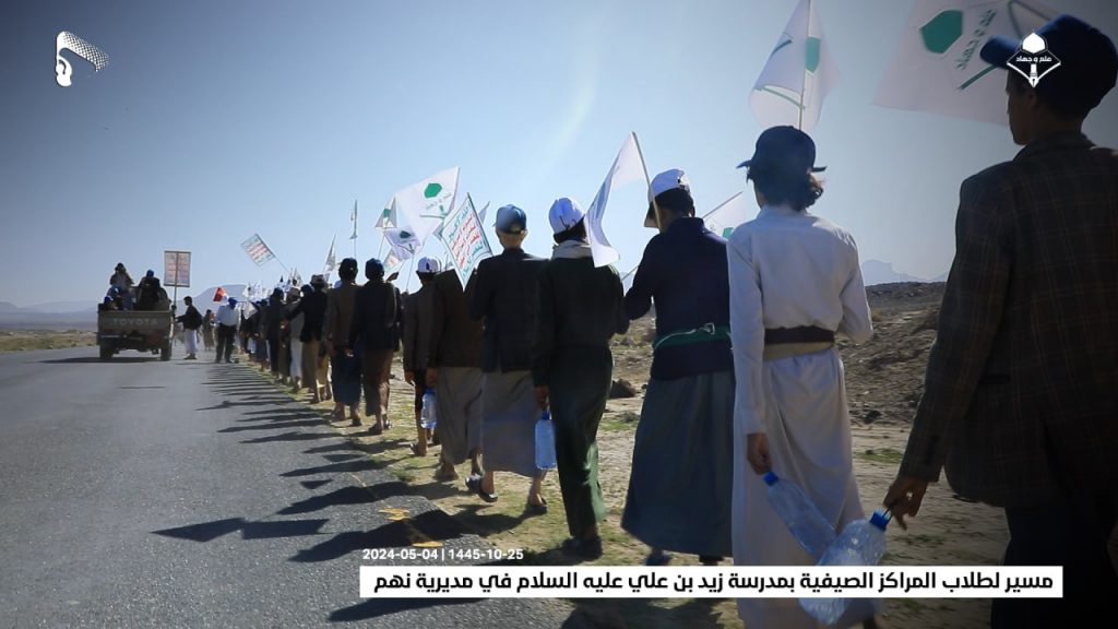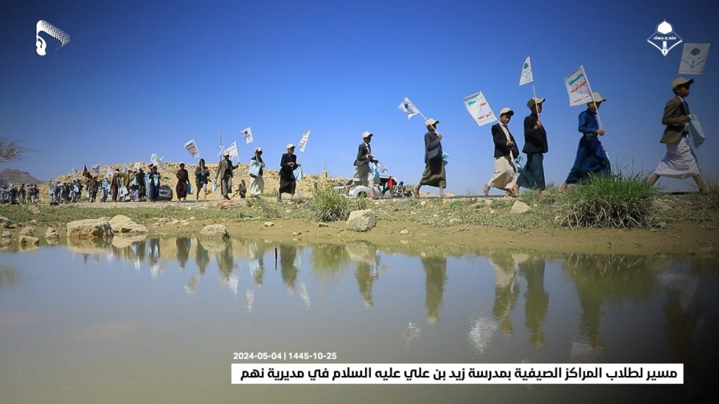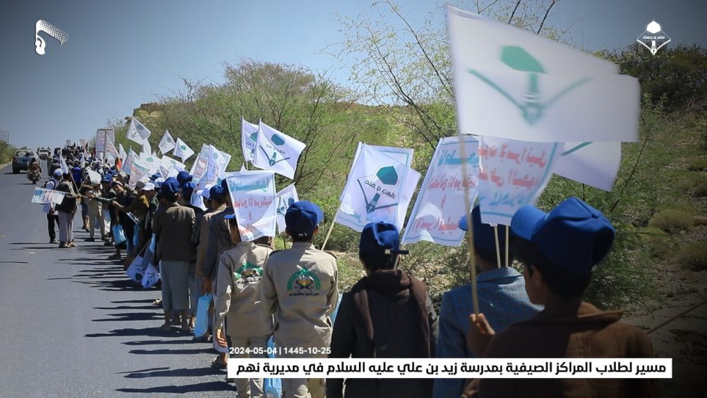 شاهد/ مسير لطلاب المراكز الصيفية بمدرسة زيد بن علي عليه السلام في مديرية نهم (صور) On مايو 4, 2024 الصمود| صور| مسير لطلاب المراكز الصيفية بمدرسة زيد بن علي عليه السلام في مديرية نهم 25-10-1445 | 04-05-2024 مشاركة