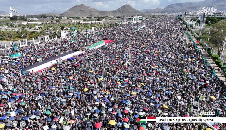 صور جوية/ طوفان مليوني غاضب في ميدان السبعين بالعاصمة صنعاء في مسيرة “التصعيد بالتصعيد.. مع غزة حتى النصر”