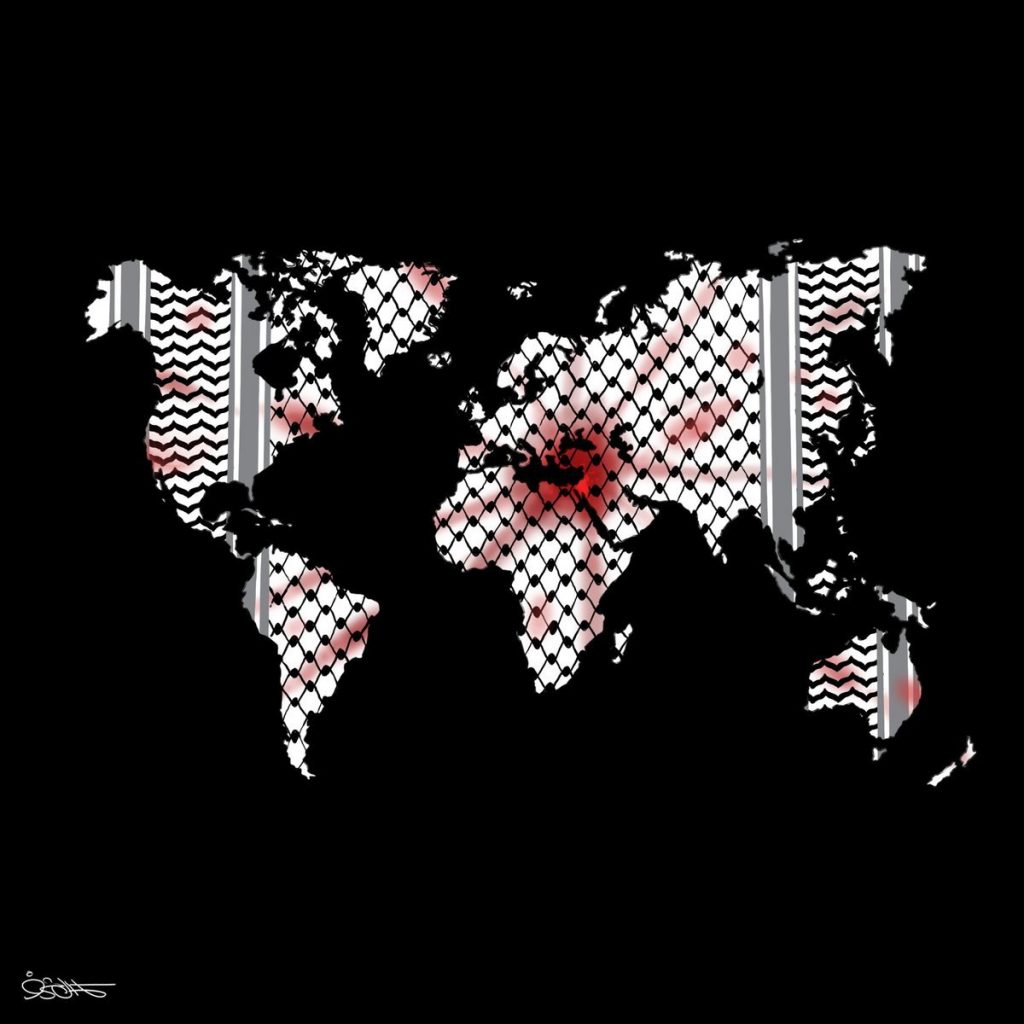 الأرض ليست كروية ولا مسطحة الأرض فلسطينية (كاريكاتير)