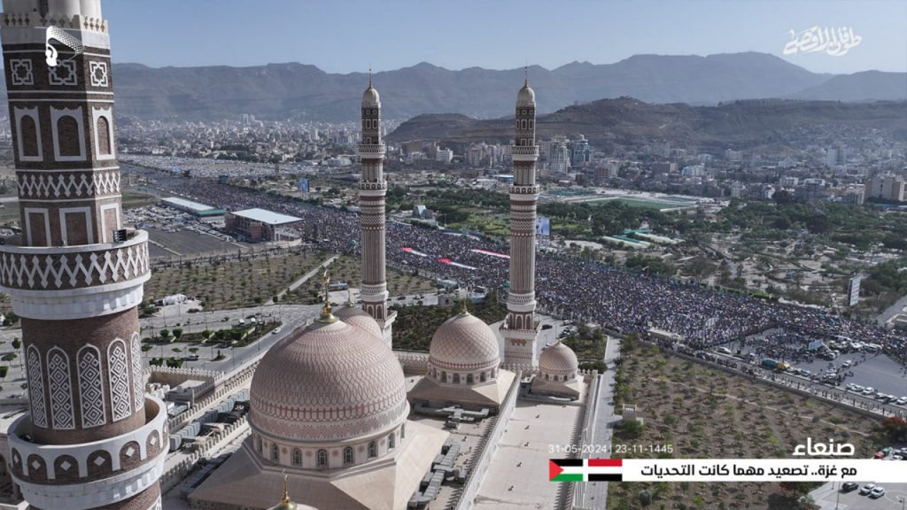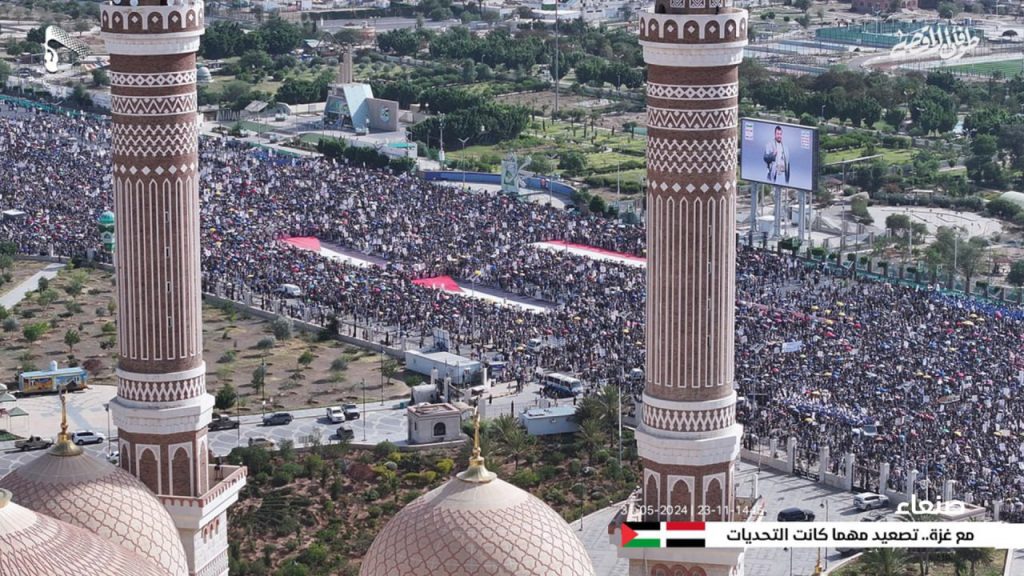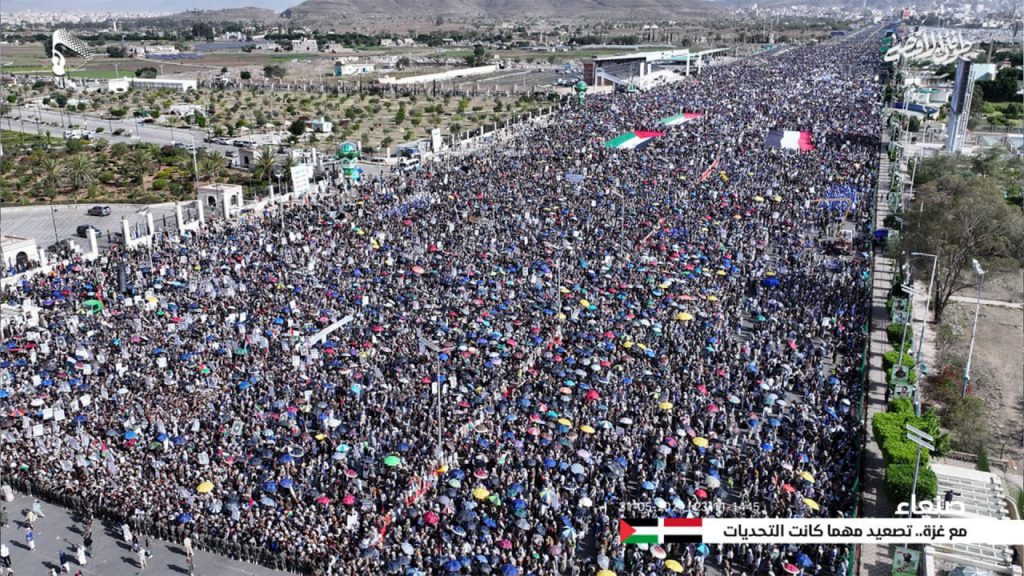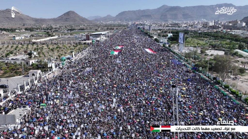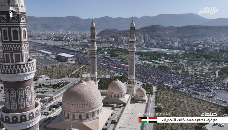 خروج مليوني بالعاصمة صنعاء نصرة لفلسطين تحت شعار “مع غزة.. تصعيد مهما كانت التحديات”