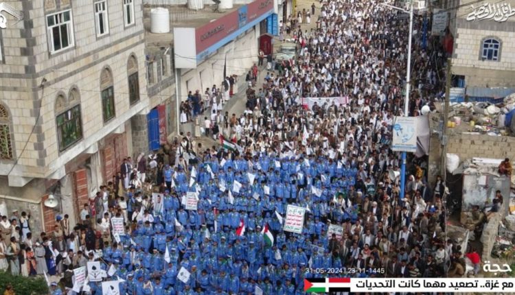 شهدت محافظة حجة اليوم مسيرات كبرى دعماً وإسناداً للشعب الفلسطيني وانتصاراً للأقصى ودماء وأرواح الشهداء بعنوان “مع غزة تصعيد مهما كانت التحديات”.