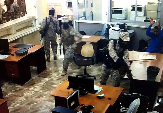 لحظة اقتحام قوات عسكرية تابعة للمجلس الانتقالي البنك الأهلي في عدن وقتل مدير البنك والسطو على الأموال والاعتداء وإهانة الموظفين.