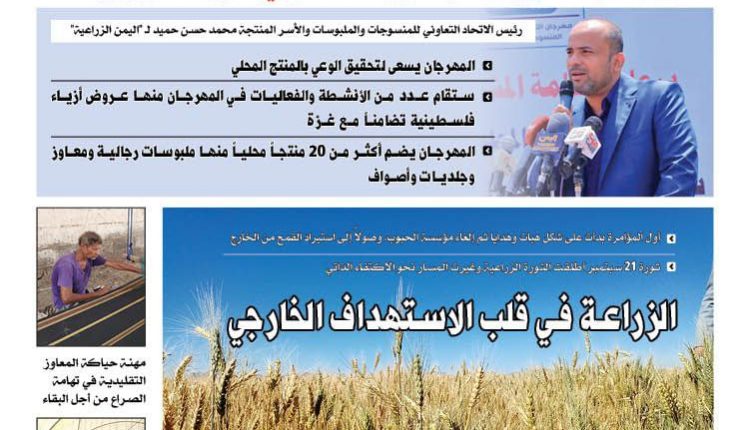 العدد الـ “65” من اليمن الزراعية في إصداره الجديد تطرق أيضاً إلى جملة من المواضيع ذات الصلة بالجانب الزراعي واهمية الاكتفاء الذاتي من مختلف المحاصيل الزراعية، والخطوات التي قطعتها بلادنا في هذا الجانب.