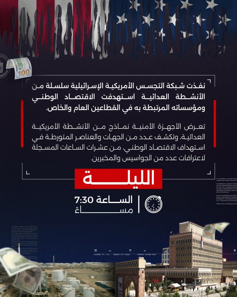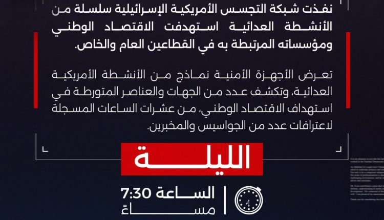 ورد الآن.. صنعاء تكشف عن خبر هام يهز كيان أمريكا في هذا التوقيت والكل في ترقب (تفاصيل) ورد الآن.. صنعاء تكشف عن خبر هام يهز كيان أمريكا في هذا التوقيت والكل في ترقب (تفاصيل) On يونيو 22, 2024 الصمود| تكشف الأجهزة الأمنية الساعة السابعة والنصف من مساء اليوم، اعترافات موسعة لشبكة التجسس الأمريكية الإسرائيلية حول أخطر مراحل استهداف القطاع الاقتصادي. اعترافات موسعة لشبكة التجسس الأمريكية الإسرائيليةالأجهزة الأمنية مشاركة
