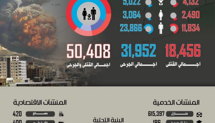 وأوضحت الإحصائية أن بين الضحايا 4,132 شهيد و5,022 جريحا من الأطفال.. فيما بلغ عدد الشهداء والجرحى من النساء خلال نفس الفترة 2,490 شهيدة و3,064 جريحة.