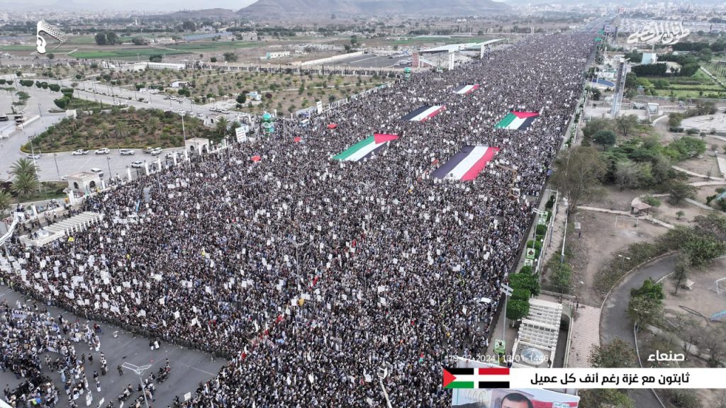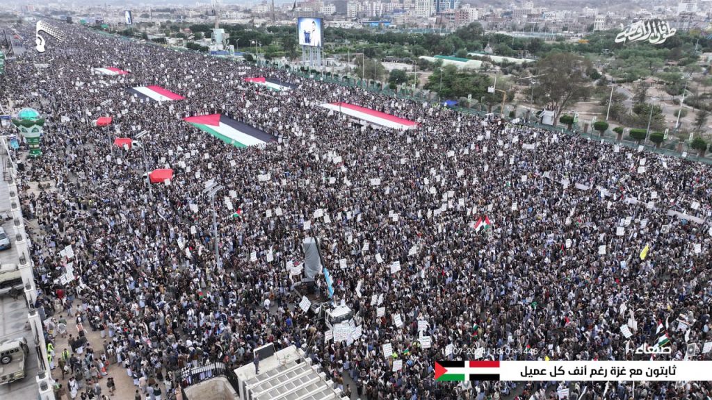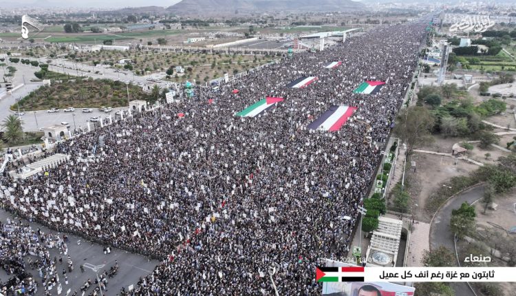 صور جوية/ ميدان السبعين بالعاصمة صنعاء يكتظ بالحشود في مسيرة “ثابتون مع غزة رغم أنف كل عميل”