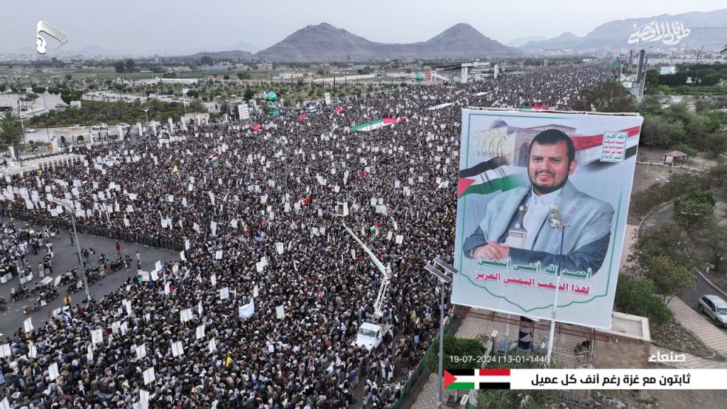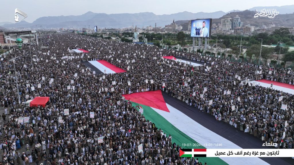 صور جوية | عقب ضربهم لـ تل أبيب يحتشدون مليونياً في ميدان النصرة الثابتة والمتصاعدة… ميدان السبعين بالعاصمة صنعاء يكتظ بالحشود في مسيرة “ثابتون مع غزة رغم أنف كل عميل” 13-01-1446 | 19-07-2024