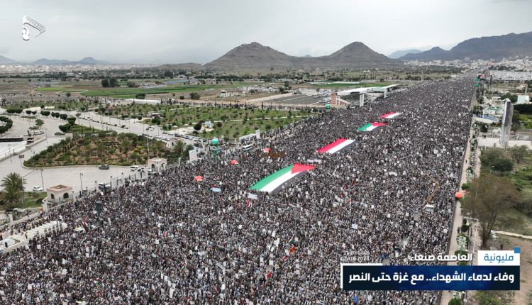 طوفان غاضب تأييداً لخيارات محور القدس والجهاد والمقاومة، ووفاءً للدماء الزكية… حشود مليونية في مسيرة “وفاء لدماء الشهداء.. مع غزة حتى النصر” في ميدان السبعين بالعاصمة صنعاء