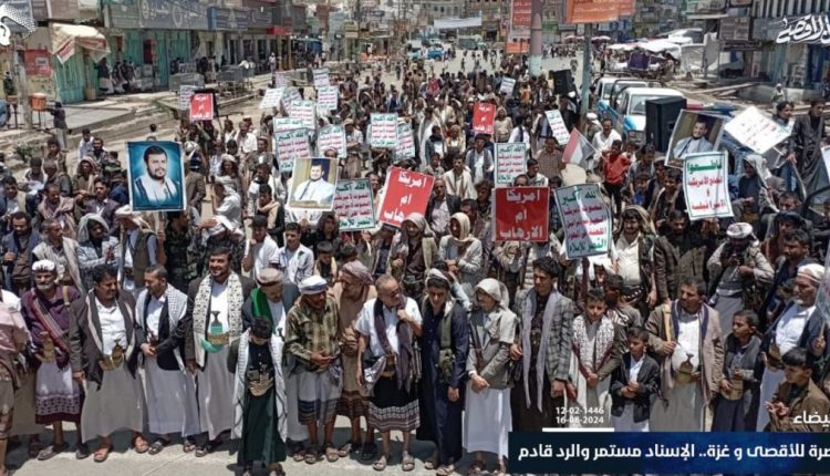 البيضاء.. في مسيرات ووقفات جماهيرية حاشدة اسناداً للشعب الفلسطيني وتنديداً باستمرار مجازر العدو الصهيوني في غزة