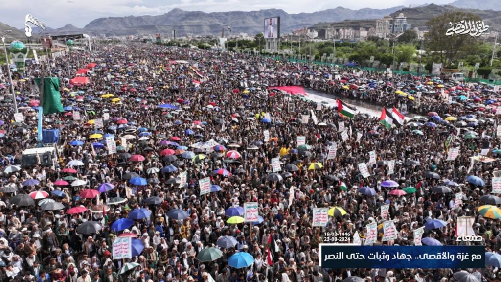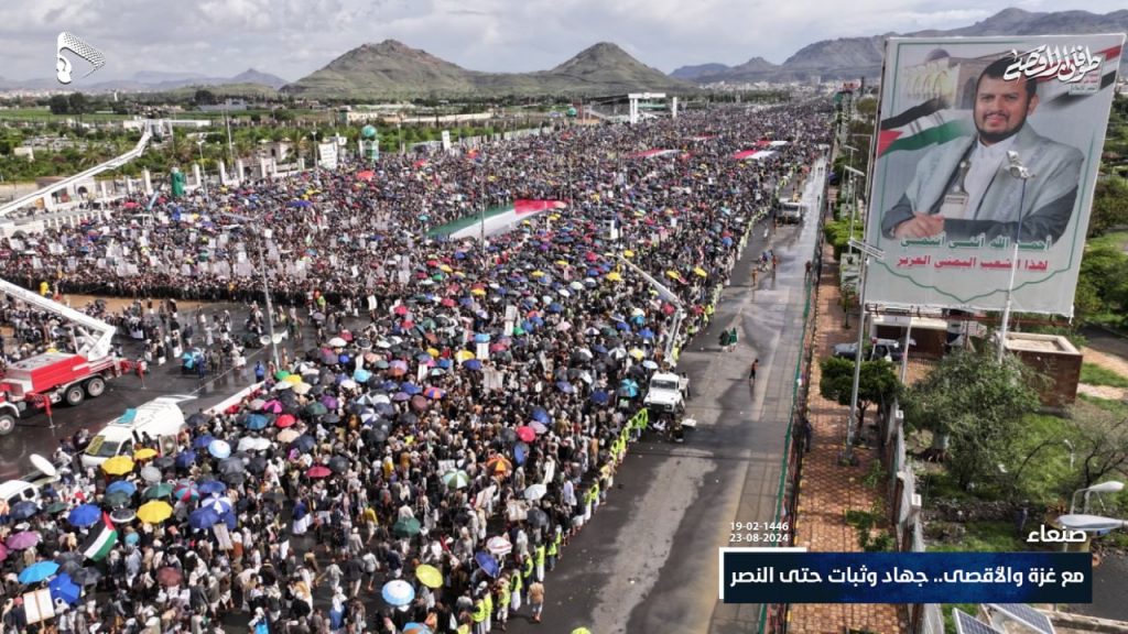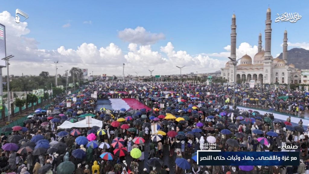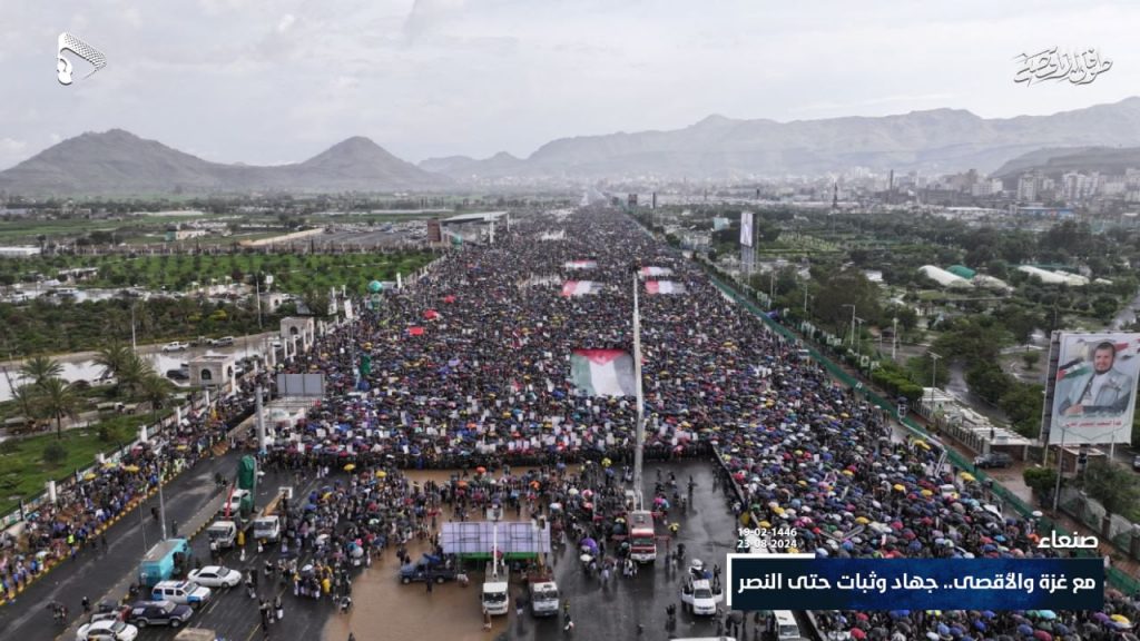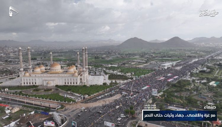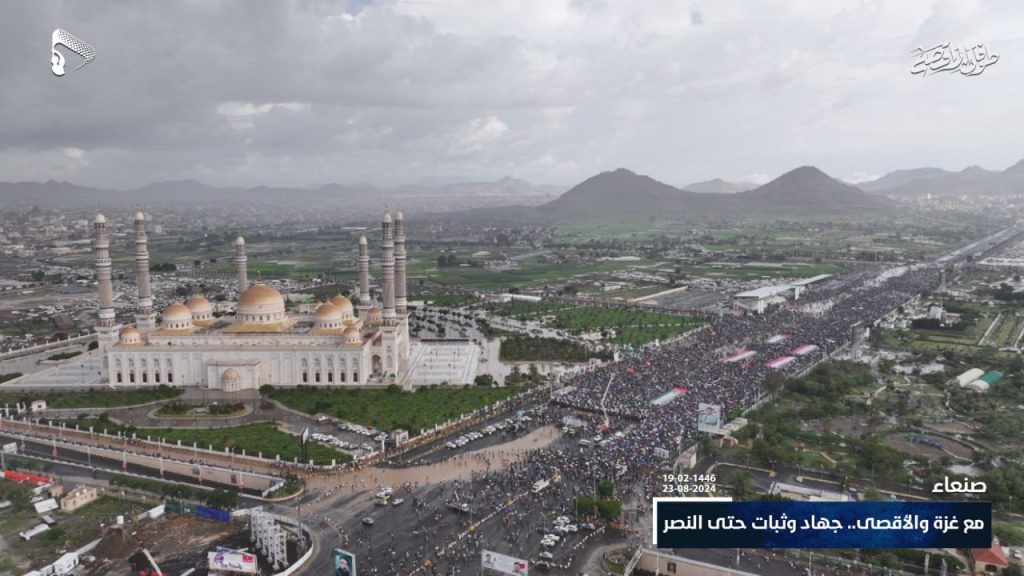 صور جوية | حشود جماهيرية كبيرة بالعاصمة صنعاء بين الأمطار الغزيرة نصرة لغزة في مسيرة “مع غزة والأقصى.. جهاد وثبات حتى النصر” 19-02-1446 | 23-08-2024