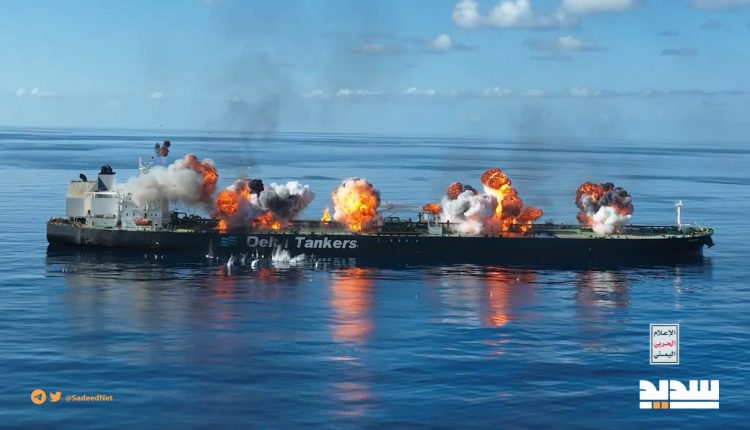 أول مشاهد يبثها الإعلام الحربي من داخل ناقلة النفط المحترقة “سونيون” في البحر الأحمر