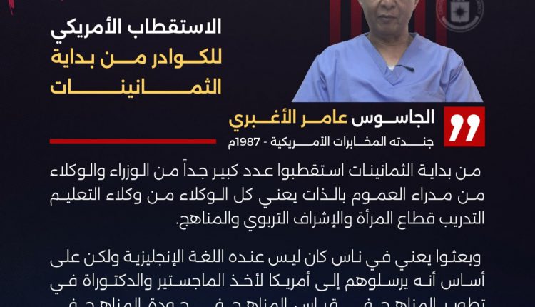 شاهد/ اعترافات صادمة للجاسوس عمار الأغبري عن كيفية الاستقطاب الأمريكي لقيادات في وزارة التربية والتعليم (فيديو) On سبتمبر 1, 2024 الصمود| فيديو https://www.alsomoud.com/wp-content/uploads/2024/09/من-بداية-الثمانينات-بدأت-أمريكا-في-التوغل-في-كل-مفاصل-وزارة-التربية-والتعليم...mp4 مشاركة