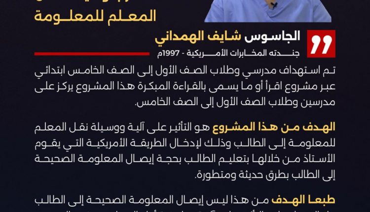 كشفت شبكة التجسس الأمريكية الإسرائيلية تفاصيل جديدة عن المؤامرات الأمريكية في استهداف اليمن في شتى المجالات، وفي مقدمتها قطاع التعليم، وذلك من خلال فرض تقاليد أمريكية لضرب وسيلة نقل المعلم للمعلومة إلى الطالب.