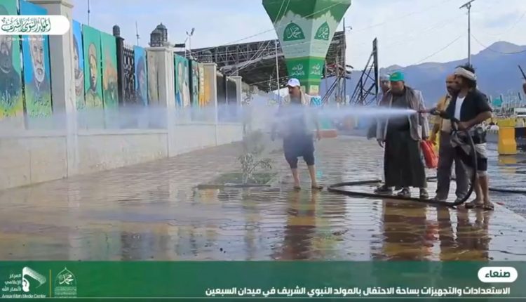 شاهد // تجهيزات واستعدادات متنوعة ومتواصلة بساحة ميدان السبعين في العاصمة صنعاء (فيديو)