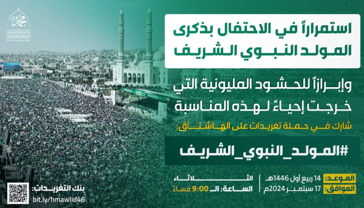 تنطلق في تمام الساعة التاسعة من مساء اليوم، حملة تغريدات على موقع التواصل الاجتماعي “إكس” استمراراً في الاحتفال بذكرى المولد النبوي الشريف.