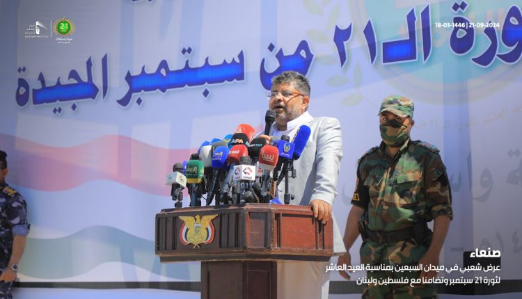 ووجه محمد علي الحوثي خلال عرض شعبي لقوات التعبئة العامة اليوم بمناسبة العيد العاشر لثورة الـ 21 من سبتمبر المجيدة، وتضامناً مع الشعبين الفلسطيني واللبناني، رسالة لمحور المقاومة في حزب الله والمقاومة الفلسطينية والعراقية بقوله “نحن في معركة ونعرف ما نقدم فيها من أثمان، ولكن الأثمان الذي تقدمونها ويقدمها الشعب اليمني ثمنها الجنة، ولا خوف ولا قلق في مواجهة العدو”.