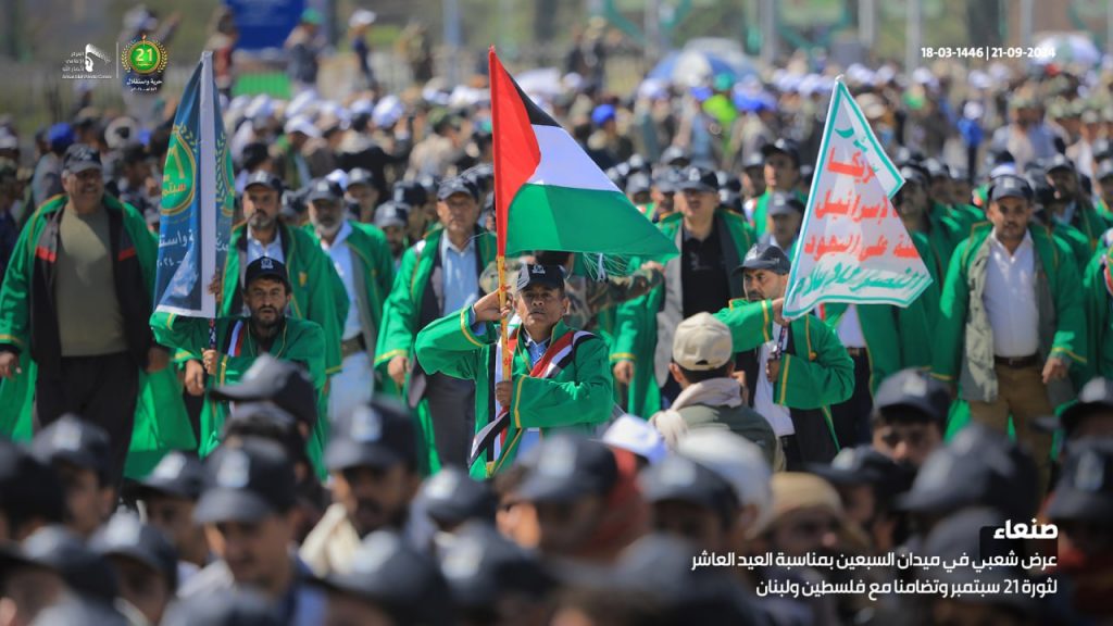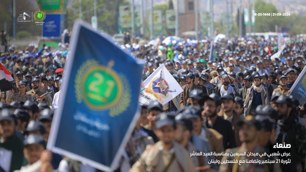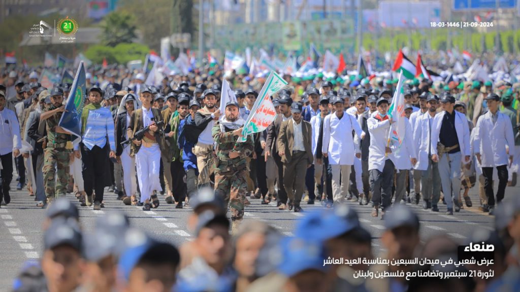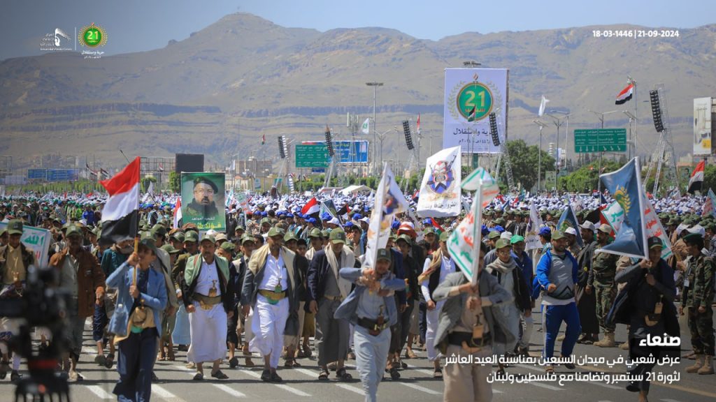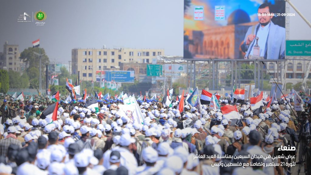 بالصور/ عرض شعبي في ميدان السبعين بالعاصمة صنعاء بمناسبة العيد العاشر لـ ثورة 21 سبتمبر وتضامنا مع فلسطين ولبنان
