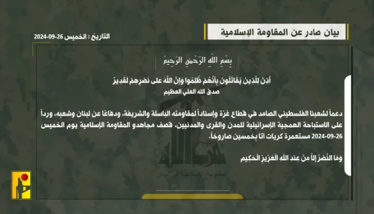 دعماً لشعبنا الفلسطيني الصامد في قطاع غزة وإسناداً لمقاومته الباسلة والشريفة، ودفاعًا عن لبنان وشعبه، ورداً على الاستباحة الهمجية الإسرائيلية للمدن والقرى والمدنيين، قصف مجاهدو المقاومة الإسلامية يوم الخميس 26-09-2024 مستعمرة كريات آتا بِخمسين صاروخاً.