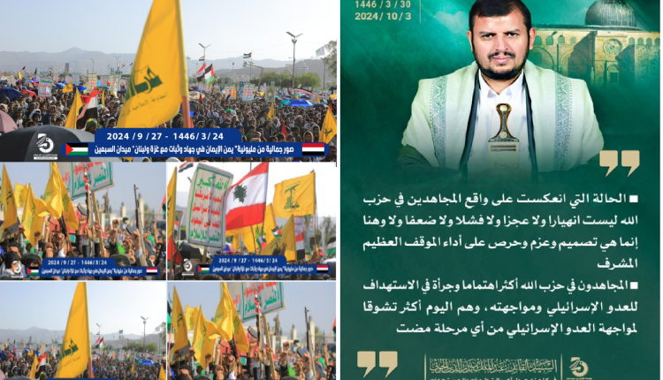 وفي خطابه الأسبوعي، مساء أمس، جدّد الحوثي تأكيد وقوف اليمن إلى جانب الشعبين الفلسطيني واللبناني في مواجهة العدوان الإسرائيلي بكل الإمكانات، مشيداً بتماسك «حزب الله» في أعقاب جريمة اغتيال الأمين العام للحزب، السيّد الشهيد حسن نصر الله، وجازماً بأن «حزب الله صار بعد استشهاد السيّد الشهيد حسن نصر الله، أقوى مما كان عليه قبل جريمة الاغتيال الإسرائيلية الآثمة». وأضاف أن «مقاتلي حزب الله أكثر تنظيماً وترتيباً واستعداداً قتالياً ونفسياً لقتال جيش الاحتلال في الحدود الجنوبية اللبنانية مع الأراضي الفلسطينية المحتلة»، لافتاً إلى أن «المواجهات البرّية التي جرت خلال الأيام القليلة الماضية حملت رسالة إلى السيد حسن نصر الله، أكد فيها مقاتلو الحزب أنهم عند وعدهم بتحقيق النصر الذي وعد به الشهيد».