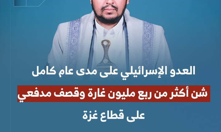 السيد القائد: العدو الإسرائيلي على مدى عام كامل شن أكثر من ربع مليون غارة وقصف مدفعي على قطاع غزة