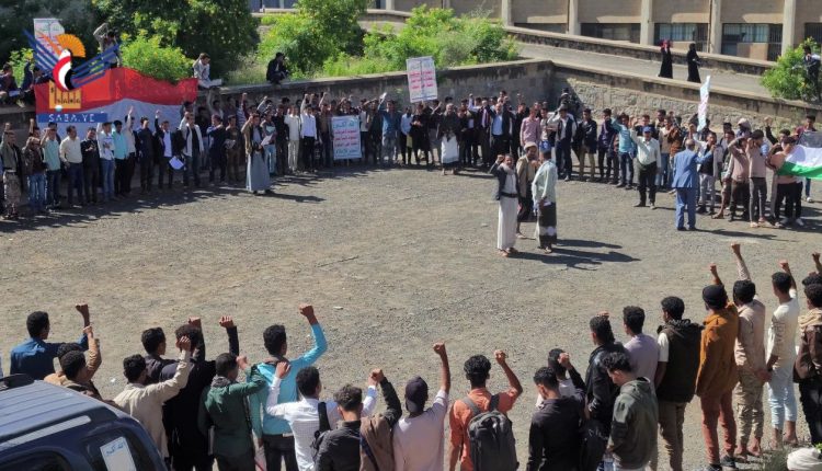تعز.. وقفتان لمنتسبي المعهد التقني الصناعي وفرع جامعة العلوم تضامناً مع فلسطين ولبنان