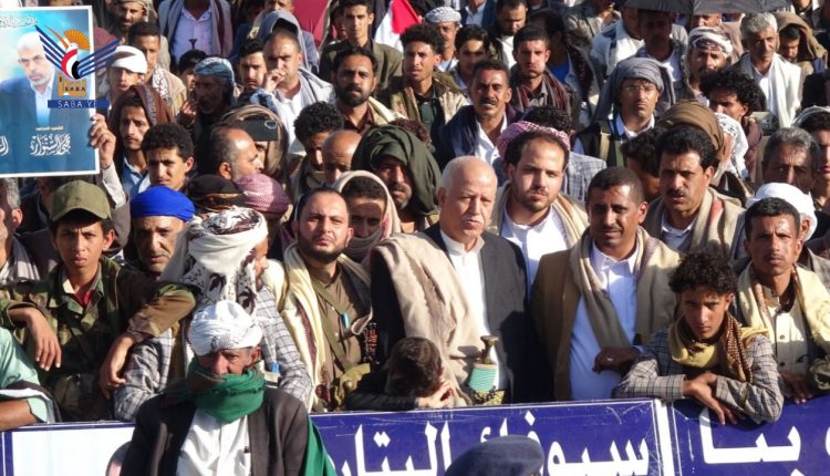 إلى ذلك شهدت مديريات المربع الشمالي “يريم، السدة، النادرة، والرضمة” عشر مسيرات حاشدة، طالب فيها المشاركون، بضرورة اتخاذ مجلس الأمن موقفاً حازماً إزاء جرائم الكيان الصهيوني في المنطقة.