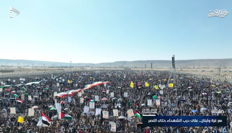 خرجت بمحافظة صعدة، اليوم، 29 مسيرة جماهيرية في مركز المحافظة والمديريات تحت شعار ” مع غزة ولبنان .. على درب الشهداء حتى النصر ” .