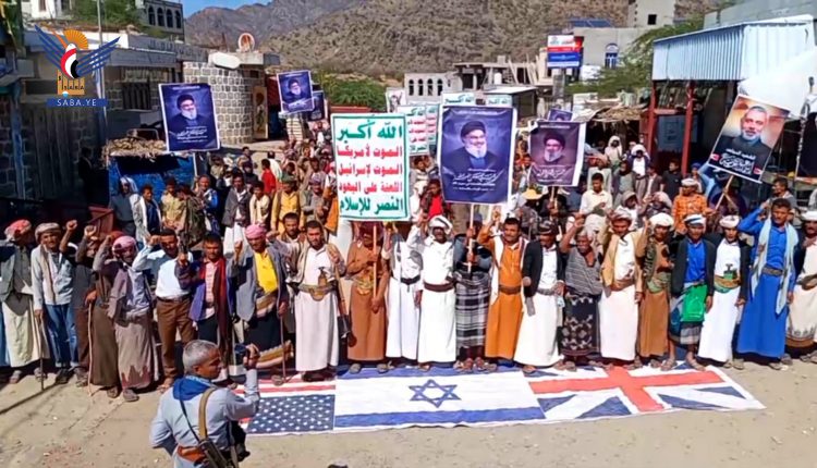 وأكدت الحشود الجماهيرية أن العدوان الأمريكي الصهيوني البريطاني على اليمن لن يثني الشعب اليمني عن مواجهته بل سيزيد إصراره على الوقوف مع الأشقاء في فلسطين ولبنان.