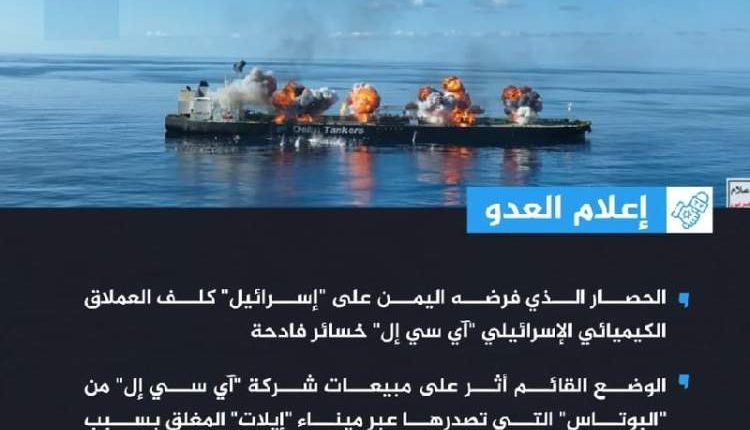 صحيفة ذاماركر:الحصار اليمني كلف العملاق الكيميائي الإسرائيلي (آي سي إل) خسائر فادحة