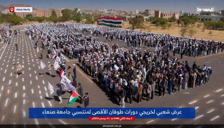 عرض طلابي لأكثر من ألفي خريج من دورات “طوفان الأقصى” بجامعة صنعاء