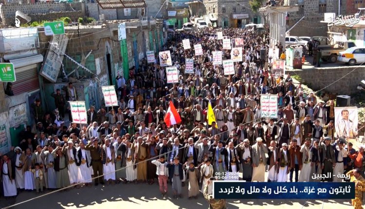 35 مسيرة حاشدة في محافظة ريمة بعنوان “ثابتون مع غزة.. بلا كلل ولا ملل ولا تردد”