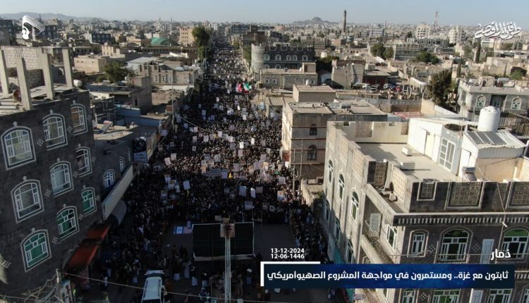 وأشار إلى أنه “وانطلاقاً من إيماننا بالله سبحانه وتعالى، وجهاداً في سبيله وابتغاءً لمرضاته، نستمر في خروجنا الأسبوعي بمسيرات مليونية، نصرةً للشعب الفلسطيني ومجاهديه الأعزاء، وتضامناً مع الشعبين السوري واللبناني ومجاهدي حزب الله، ومواجهةً للمشروع الصهيو أمريكي”.