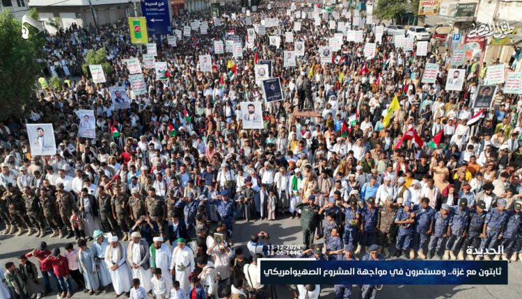 الحديدة.. 114 مسيرة تحت شعار “ثابتون مع غزة ومستمرون في مواجهة المشروع الصهيوأمريكي”