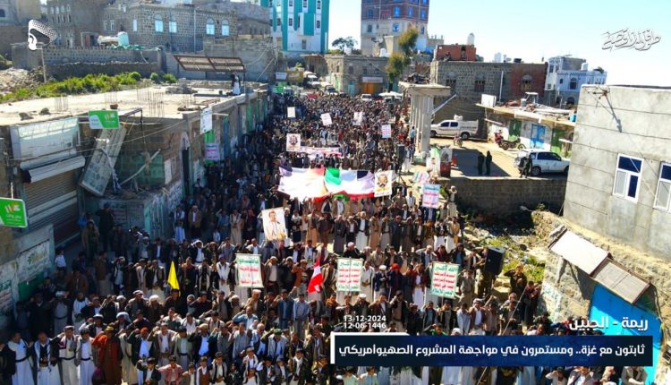 ريمة.. 43 مسيرة جماهيرية تحت شعار (ثابتون مع غزة.. ومستمرون في مواجهة المشروع الصهيوأمريكي)