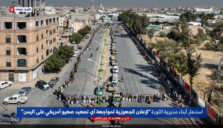 بالصور/ استنفار أبناء مديرية الثورة بالعاصمة صنعاء لإعلان الجهوزية لمواجهة أي تصعيد على اليمن On يناير 5, 2025 الصمود| صور مشاركة