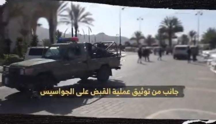 وزع الاعلام الامني مشاهد تظهر لحظة القبض على جواسيس الشبكة البريطانية السعودية.