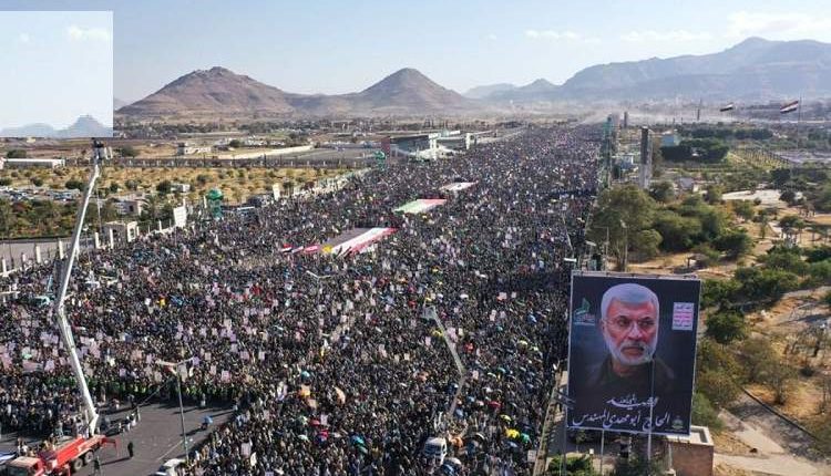 خرجت بالعاصمة صنعاء مسيرة مليونية كبرى، في طوفان بشري متجدد نصرة وإسنادا للشعب الفلسطيني تحت شعار ” جهادا في سبيل الله ونصرةً لغزة سنواجه كل الطواغيت “.
