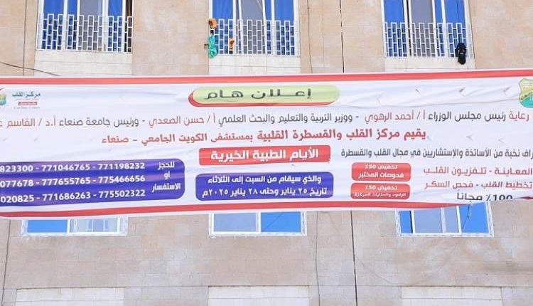 مخيم مجاني .. للقلب والقسطرة بمستشفى الكويت الجامعي بصنعاء