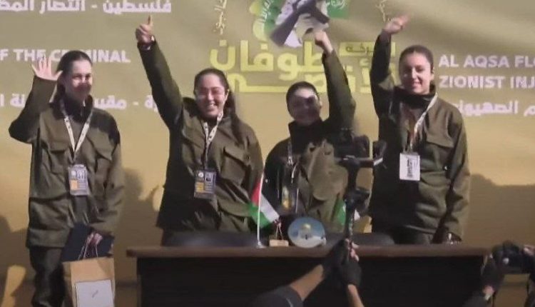 فيما سلمت كتائب الشهيد عز الدين القسام الجناح العسكري لحركة حماس، أربع أسيرات صهيونيات للصليب الأحمر في ميدان فلسطين وسط مدينة غزة.
