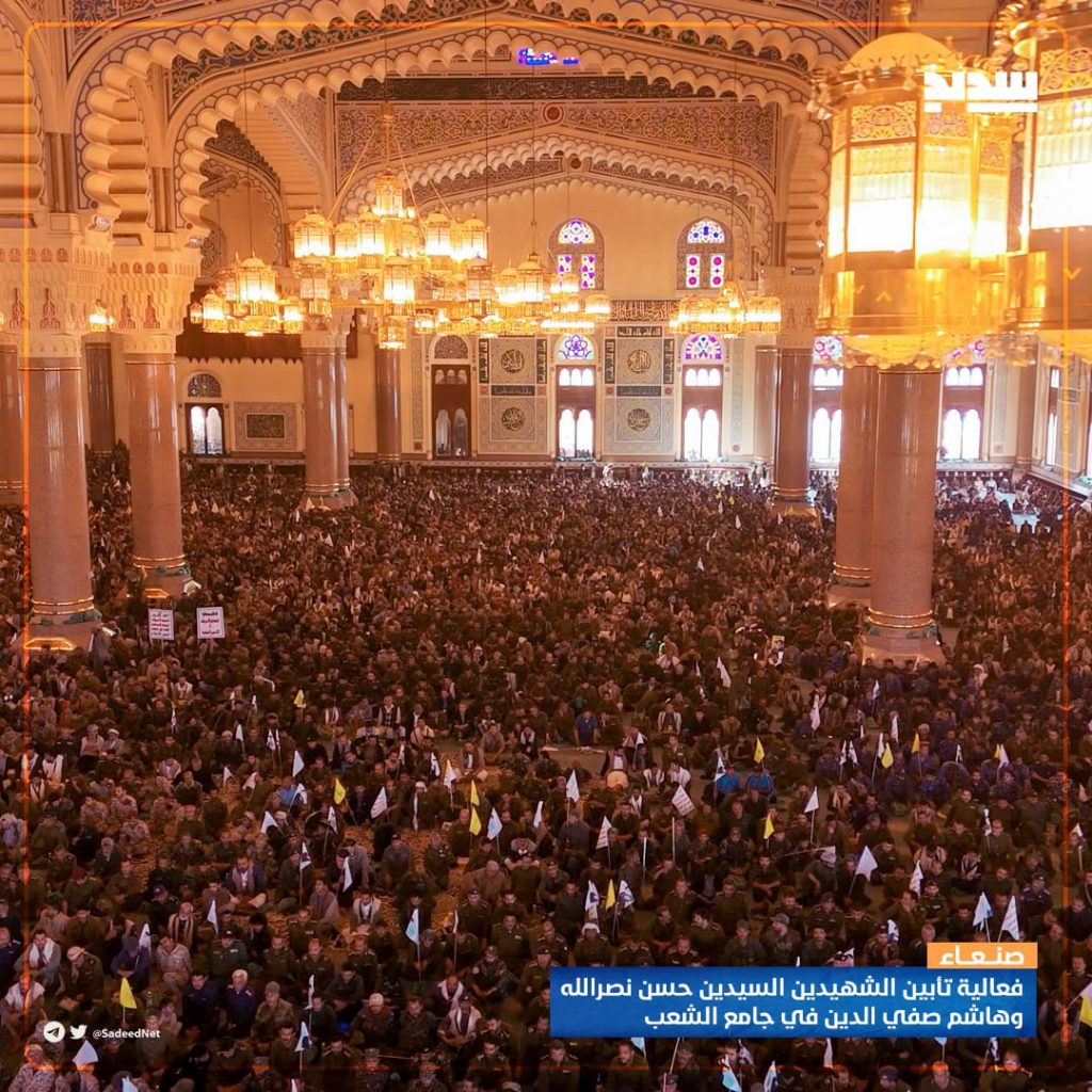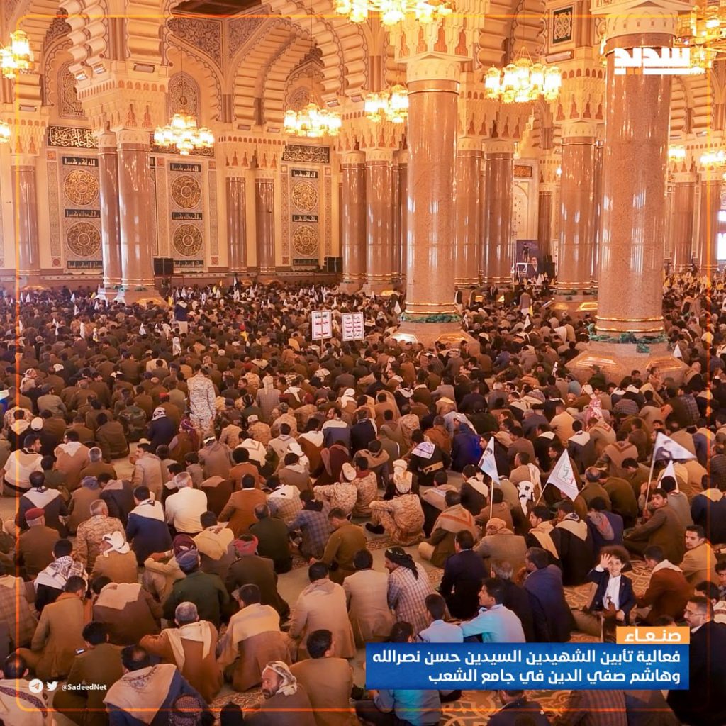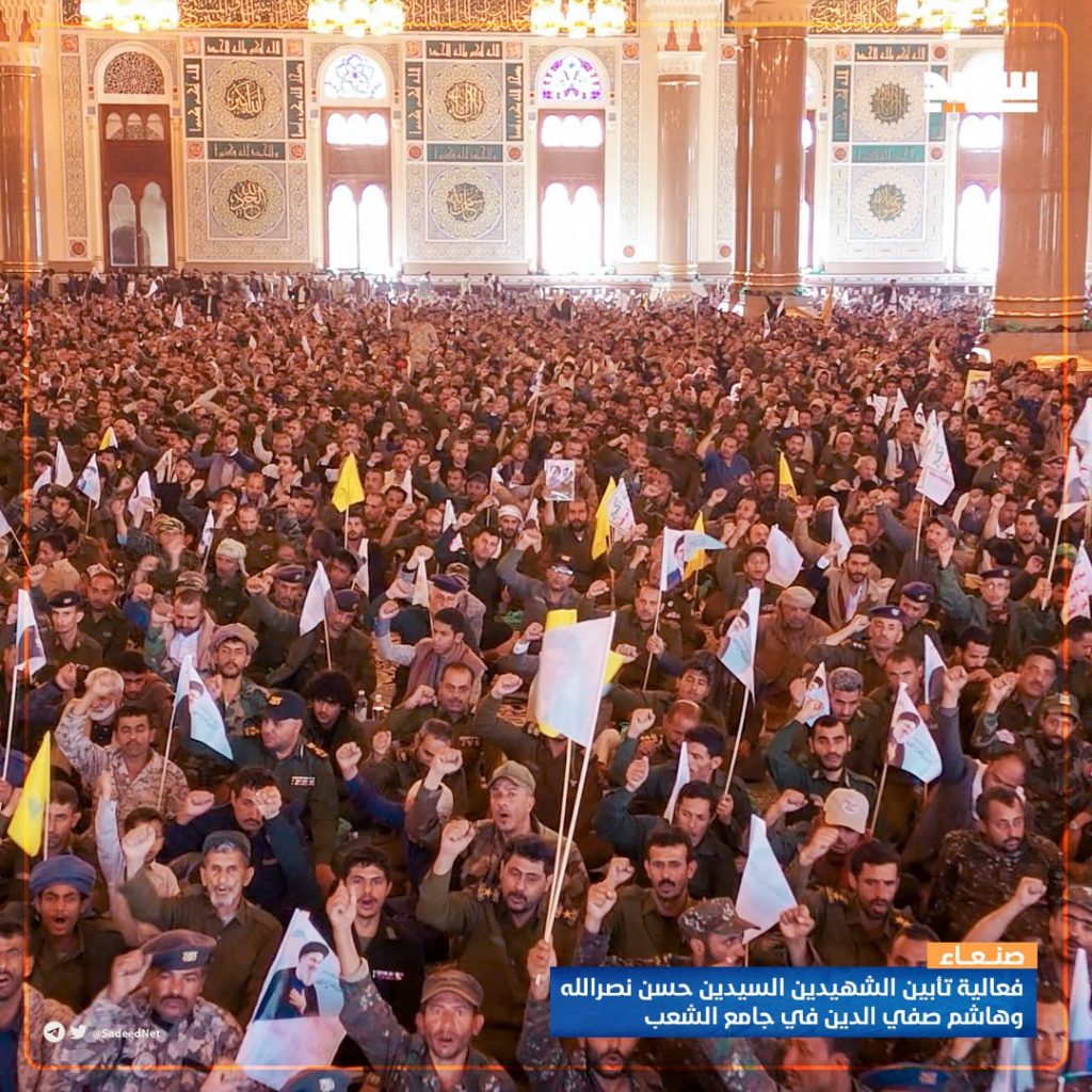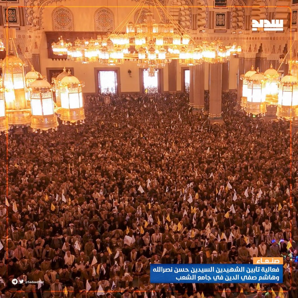 بالصور/ حضور رسمي وشعبي كبير… فعالية تأبين الشهيدين السيدين نصرالله وصفي الدين في جامع الشعب بالعاصمة صنعاء